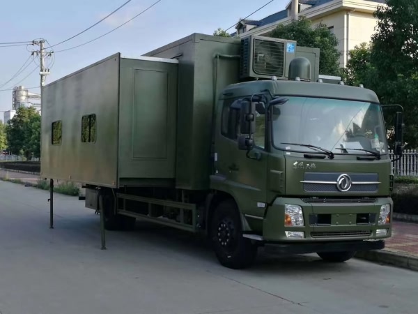 宿营方舱展开外形尺寸(L×W×H):7350mm×4653mm×2377mm4,在平整正常柏油路面车速:≥90Km/h